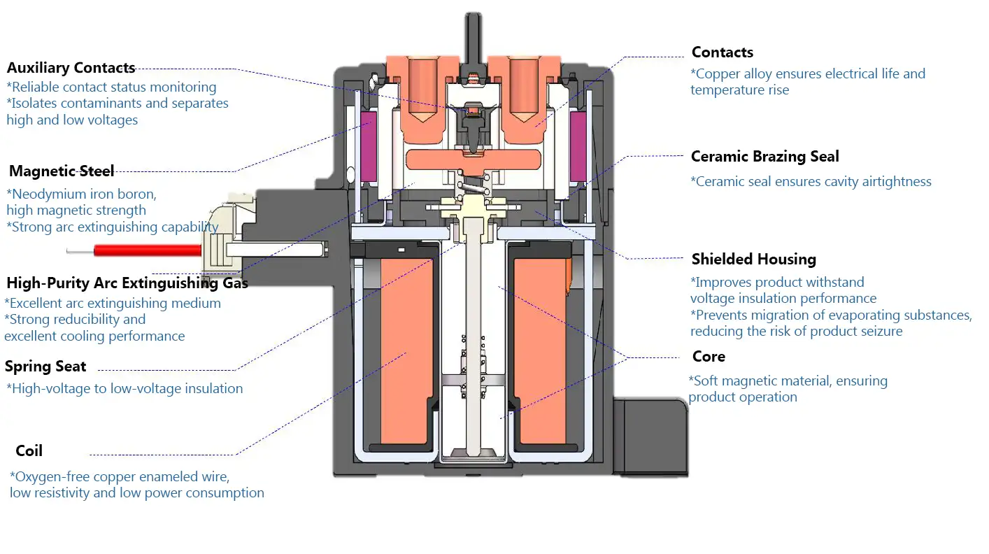 HIITIO đã phát triển một danh mục đầy đủ các dòng DC contactor cao áp nhằm đáp ứng nhu cầu mới nổi của thị trường. Dưới đây là những khác biệt công nghệ cốt lõi của họ: